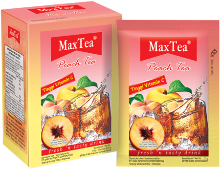 Dengan keahlian dan pengalaman membuat jenis minuman lemon tea, kini MaxTea menyajikan minuman instan Peach Tea yang sama nikmatnya. Perpaduan rasa teh, peach dengan rasa manis yang pas, memberikan kesegaran bila dikonsumsi dingin, atau dikonsumsi hangat memberikan rasa nikmat yang menenangkan.